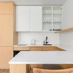 - ❓Is there a kitchen available at the apartment for guest use?Yes, the apartment is furnished with a fully-fitted kitchen and offers an electric kettle, a fridge, and glassware as well.